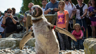 A colony of Humboldt penguins have been living at Marwell since 2000. Their home consists of a deep pool with a pebbly beach, a stream, nest tunnels between rocks, boulders, plant cover and soil to make their own scrapes in. An underwater viewing area allows visitors to watch their incredible agility as they zoom around underwater.